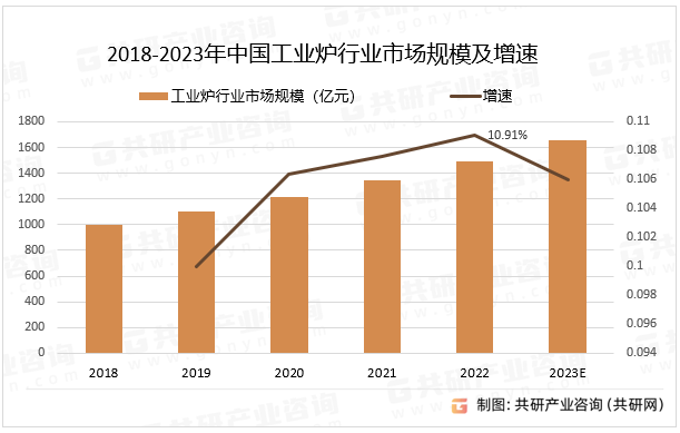工业炉行业是一个多学科交叉、技术密集型的行业,涉及到冶金、机械、电子、化工、材料、热工、自动化控制等多个领域,工业炉的生产和应用,对于推动我国经济的发展和提高我国工业技术水平具有重要的意义。随着环保政策的加强和能源消耗的减少,工业炉行业需要不断提高技术水平,以满足市场需求,2022年中国工业炉行业市场规模同比增长10.91%。