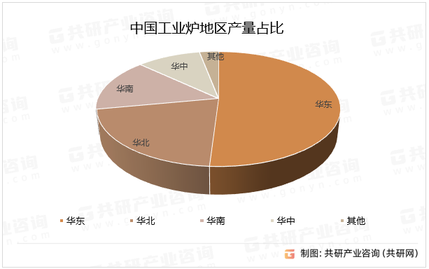 我国工业炉行业主要集中在华东、华北、华南和华中地区,华东地区工业炉产量占比最高,为50.5%,其次为华北地区、华南地区、华北地区,这四个地区的工业炉产量占据了我国工业炉行业总产量的97%。